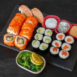 8ks California sesame, 6ks maki losos, 6ks maki okurka,